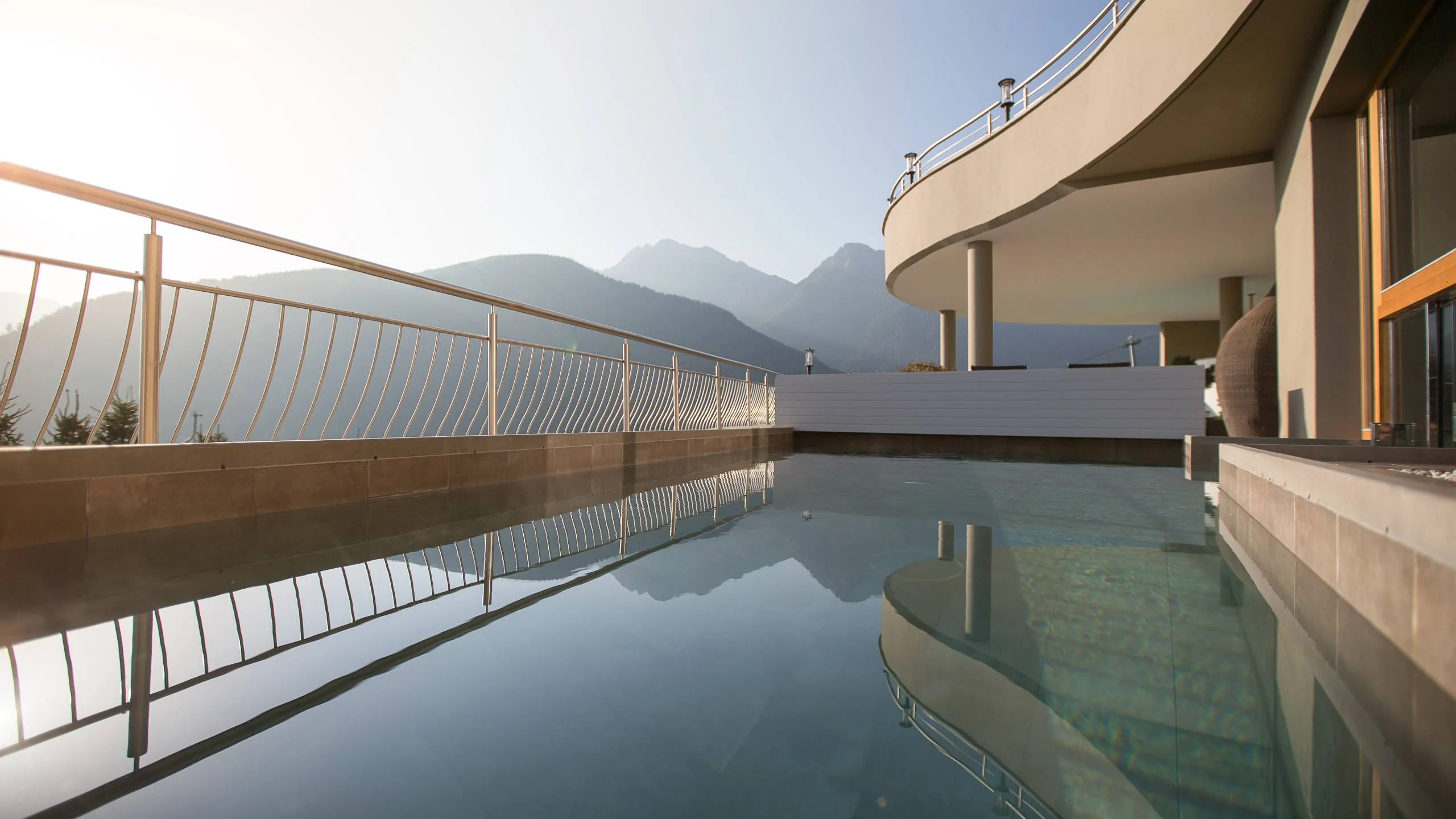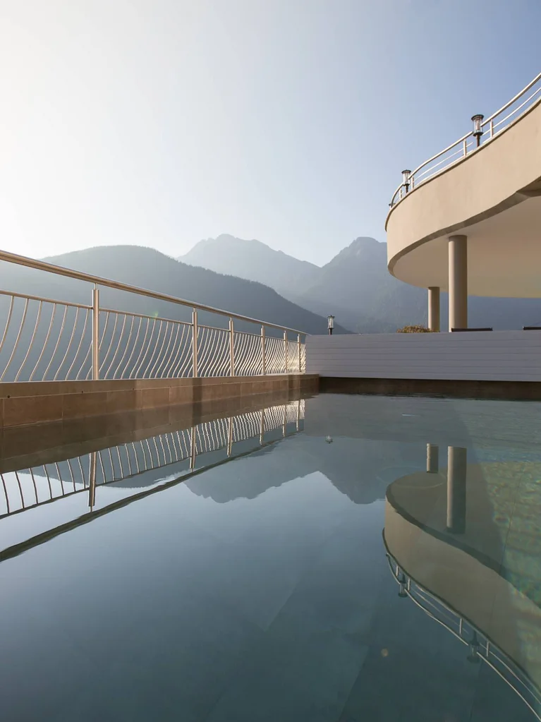 Die Dolomiten. Unser Hotel mit Pool. Ein weiches Handtuch. Sonnenstrahlen auf der Haut. Ein Buch, das nicht gelesen werden muss. Unser Liege- und Ruhebereich unter freiem Himmel und die Dachterrasse mit Blick auf die Dolomiten schenken Ihnen Raum zum Nichtstun.