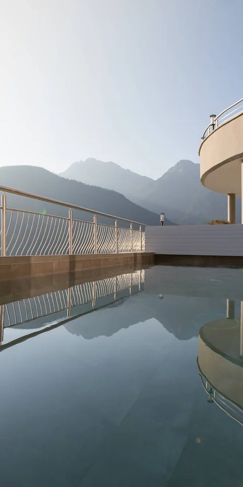 Es gibt Pools, die man besucht – und es gibt Pools, die man erlebt. Im Kristall erwarten Sie ein lichtdurchfluteter Innenpool und ein beheizter Außenpool, beide 30 Grad warm und mit Dolomitenblick. Nebenan sprudelt der Panorama-Whirlpool und lädt dazu ein, den Blick noch ein wenig länger über die Gipfel schweifen zu lassen. Bis 19.30 Uhr gehört dieser Ort ganz Ihnen – dann wird es still am Wasser, und das Panorama begleitet Sie hinaus in den Abend.