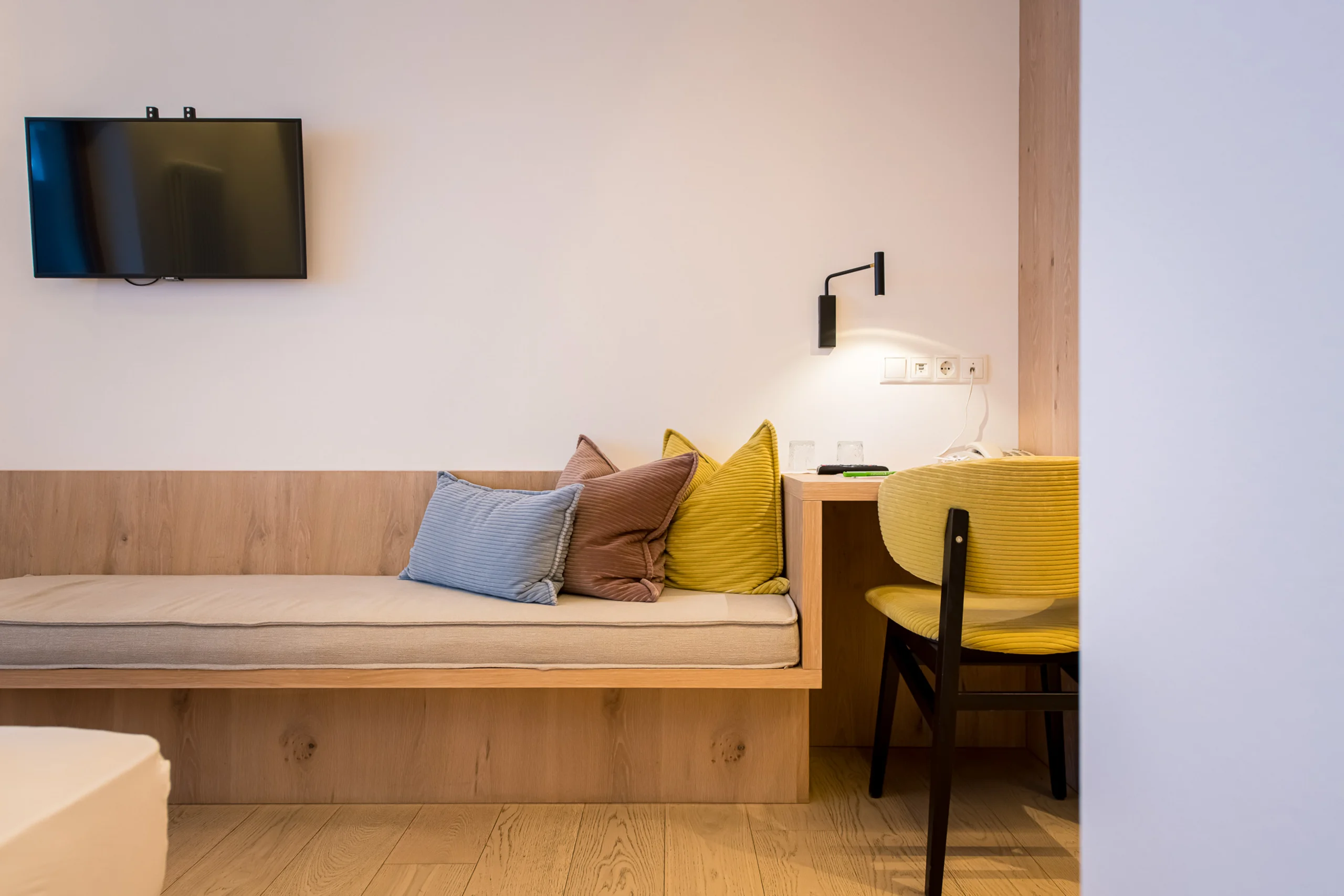 Al Kristall, il nostro hotel sulle Dolomiti, non troverete né fronzoli né effetti speciali. Ma molto di ciò che fa stare bene: tessuti morbidi, legno caldo, linee pulite. Un rifugio che la sera vi accoglie – e al mattino vi lascia andare a malincuore. La luce segue il ritmo del giorno. E una vista che, già al risveglio, vi invita a uscire. Che si tratti di una camera o di una suite, nella nostra struttura al Plan de Corones non si viene solo per riposare. Si viene per restare.
