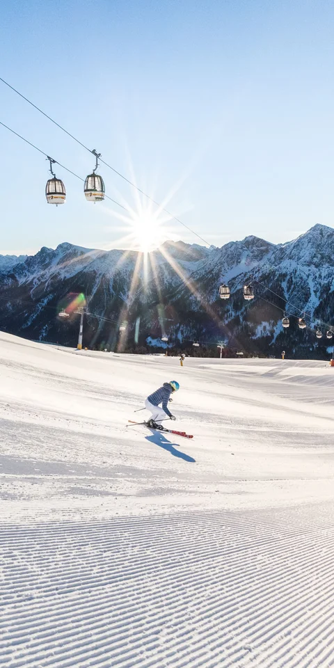 Al Kristall, il Plan de Corones non è “nei dintorni”. È proprio davanti alla porta. Sci ai piedi e via – senza navette, senza attese, senza stress. Così inizia una giornata sugli sci come dev’essere: spensierata, rilassata, piena di entusiasmo. E con la fantastica opzione ski-in/ski-out del nostro hotel sulle piste al Plan de Corones. E se la neve non raggiunge la porta dell’hotel a inizio o a fine stagione? Nessun problema. Offriamo un servizio navetta per la stazione a valle a orari fissi (quattro volte al mattino, quattro volte nel pomeriggio) – in alternativa, la pista è raggiungibile a piedi in soli 100 metri.