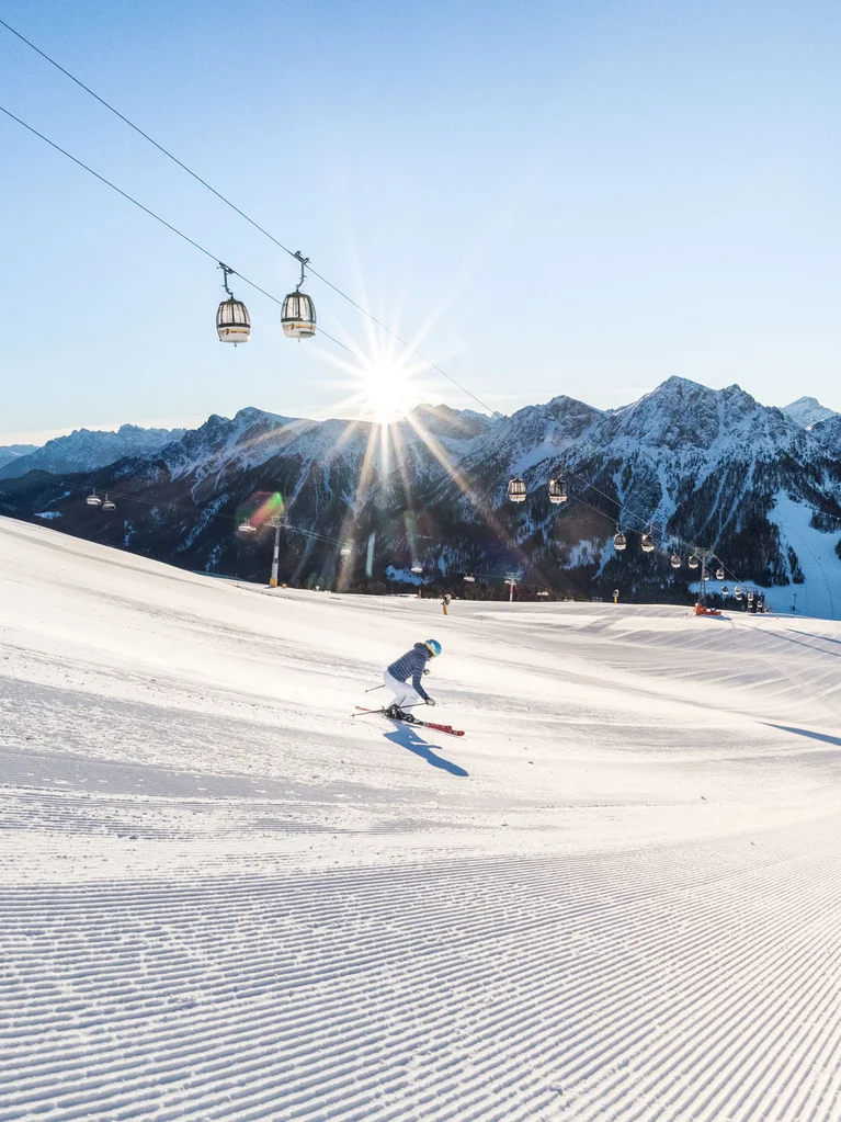 Discese in ogni direzione. 121 km di piste perfettamente battute. 31 impianti di risalita moderni. E un panorama ineguagliabile. Cosa rende speciale il Plan de Corones? Tutto è concentrato in un unico punto, senza essere dispersivo e confuso. Vi attende un comprensorio compatto, ben organizzato e adatto a tutti – dai principianti agli esperti.