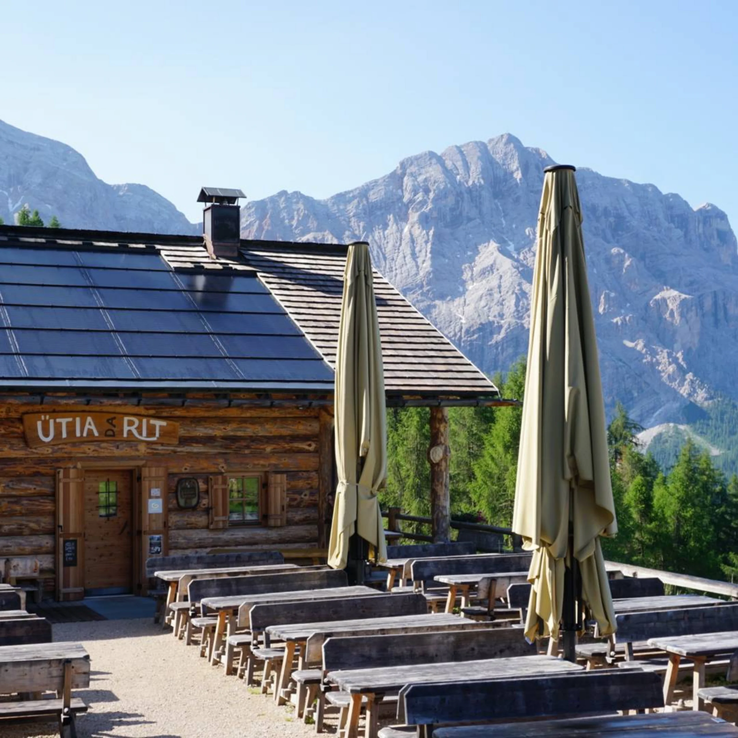 Seguire la strada sterrata fino al rifugio. La malga Rit si trova in una posizione pittoresca e offre una vista mozzafiato sul massiccio del L’Ciavall, sul gruppo Puez-Odle e sull'intera valle Badia. Se si cammina a meno di un chilometro dal rifugio, si raggiunge la Ritkreuz (Crusc da Rit). Qui la vista è ancora più suggestiva, perché si possono vedere anche San Vigilio, Plan de Corones e la Valle Aurina.