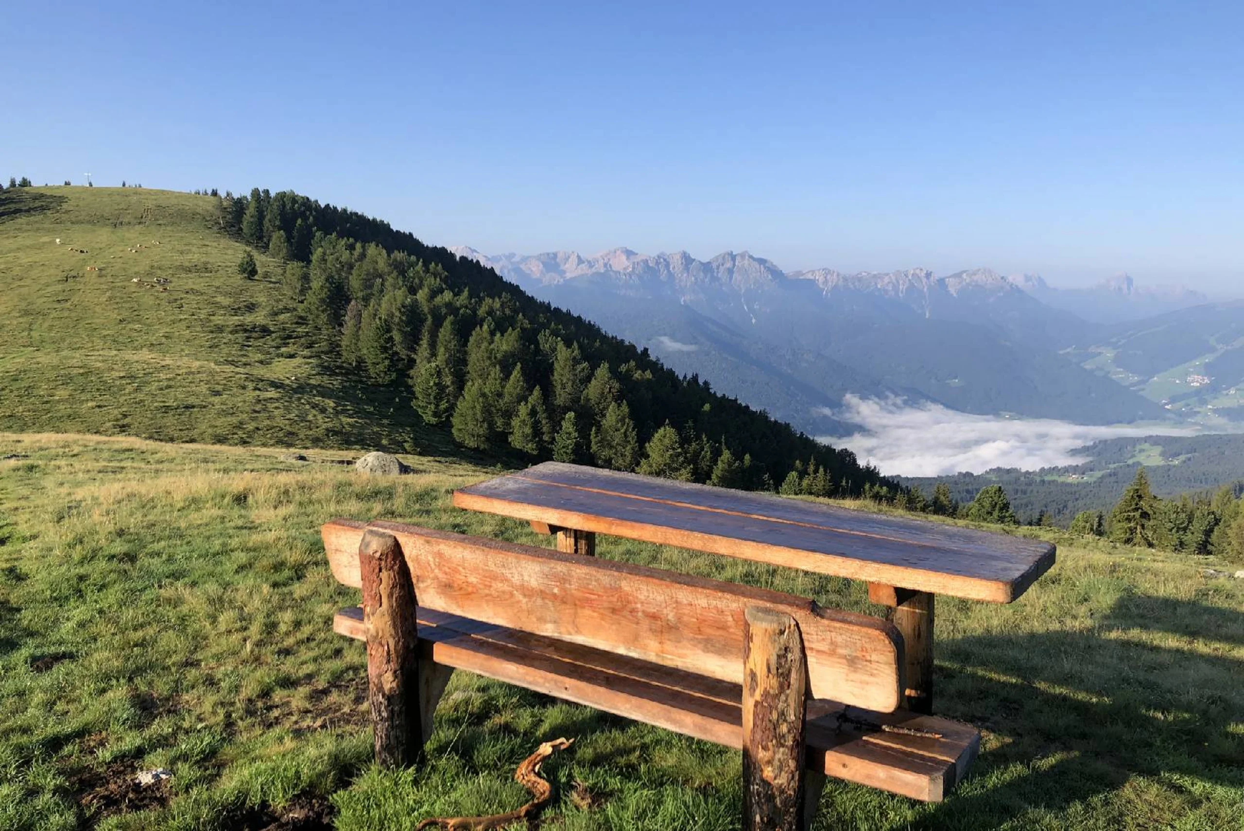 Dal parcheggio del Mudlerhof, proseguite dritti lungo l'ampio sentiero forestale. L'escursione è in leggera salita. Seguite lo stesso sentiero attraverso i pendii del bosco fino alla Malga Taistner. Dalla terrazza soleggiata del rifugio si gode di una vista mozzafiato sulle Dolomiti. Il rifugio è rustico, il cibo è delizioso e l'ospitalità è molto importante. Il ritorno può avvenire lungo lo stesso percorso. Se volete prolungare l'escursione, potete tornare al parcheggio passando per la cima del Monte Luta. Questa variante è più lunga di 1,7 km e richiede un dislivello aggiuntivo di 170 metri in discesa.