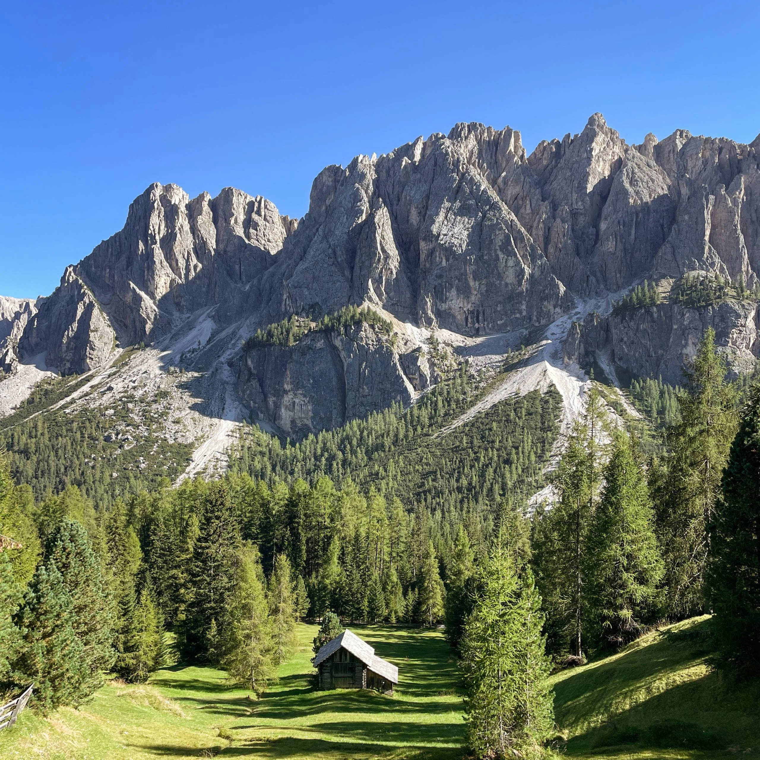 L'escursione inizia nel piccolo villaggio di Campill presso il parcheggio di Pares o Val di Morins. Si segue la strada forestale nella valle. Presto si arriva a un bivio segnalato: si può rimanere sulla strada forestale, che comporta 1 km in più a tratta, oppure scegliere il sentiero forestale, più breve ma un po' più ripido. Al limite del bosco si incontra di nuovo la strada forestale e la si può seguire fino al rifugio (o prendere un'altra scorciatoia). Intorno al rifugio c'è un'ampia terrazza con sedie a sdraio e la vista sulle cime del gruppo Puez-Odle è semplicemente stupenda.